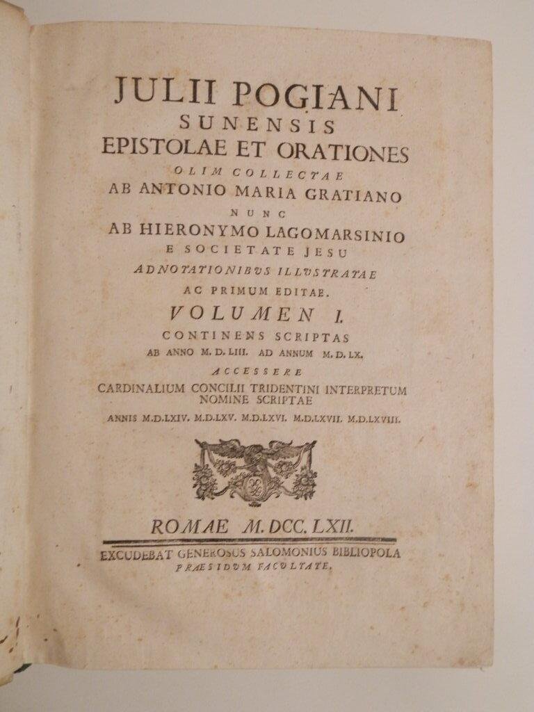 Julii Pogiani Sunensis Epistolae et orationes olim collectae ab Antonio Maria Gratiano nunc ab Hieronymo Lagomarsinio e Societate Jesu adnotationibus illustratae ac primum editae