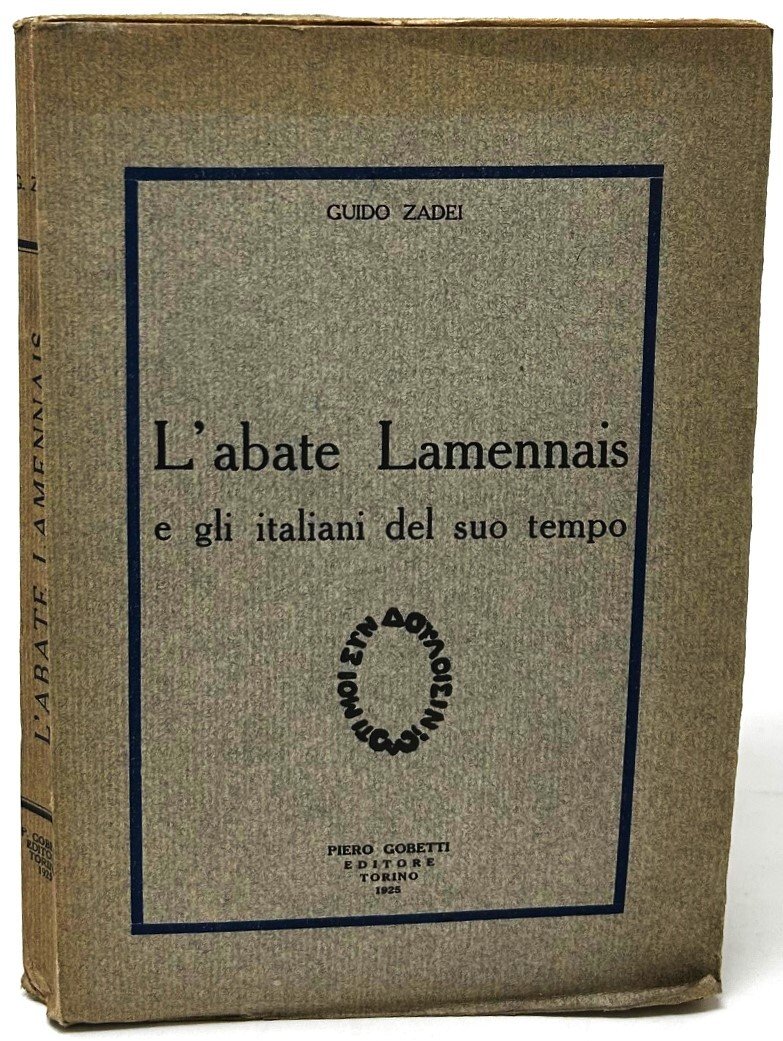 >in 16, pp. 278, (2), brossura editoriale. Edizione originale, ben conservata. Opera di Guido Zadei (1883-1934) dedicata al cattolico liberale francese Lamennais. Nel saggio, pubblicato nel 1925, traspare l'opposizione al processo di avvicinamento tra Mussolini e la Chiesa. Non comune.