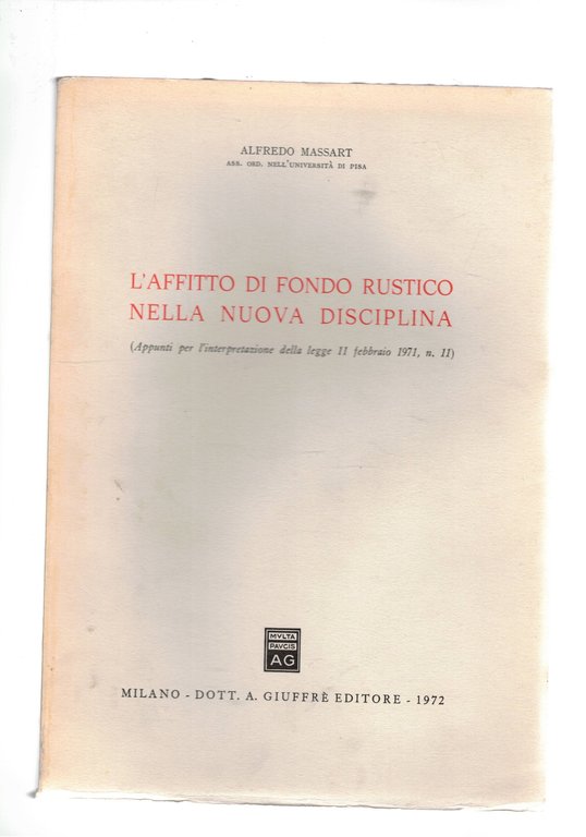 L'affitto del fondo rustico nella nuova disciplina. (asppunti per l'interpretazione della legge 11 feb. 1971 n° 11).