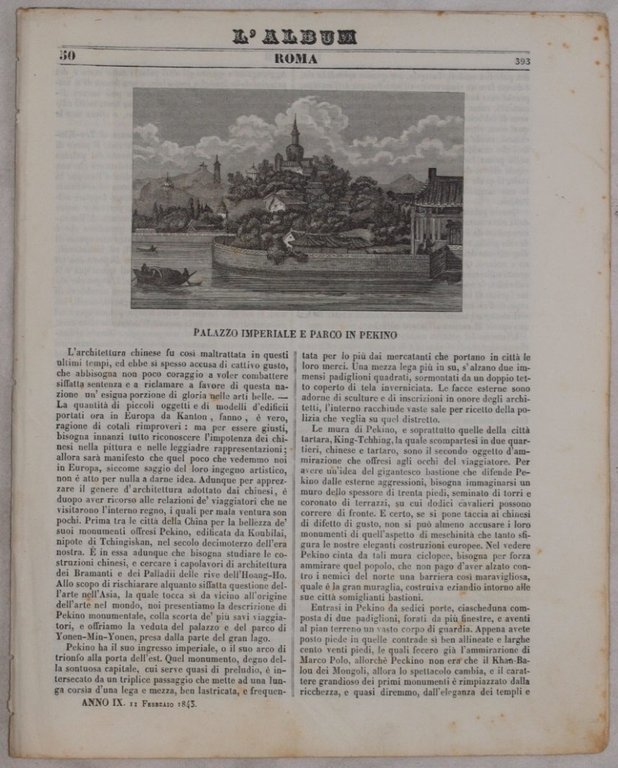 L'ALBUM DI ROMA 11 FEBBRAIO 1843
