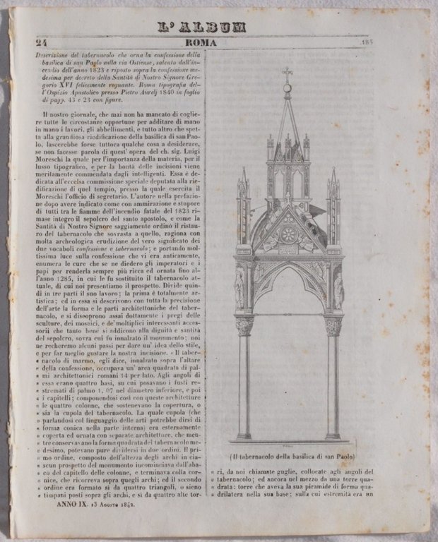 L'ALBUM DI ROMA 13 AGOSTO 1842
