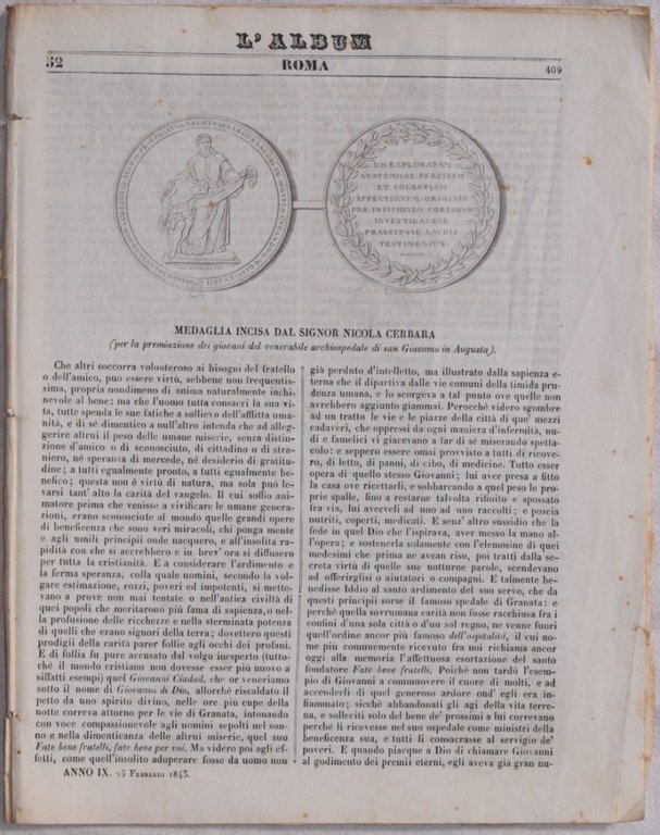 L'ALBUM DI ROMA 25 FEBBRAIO 1843