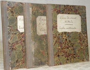 175x140mm, 99 pages, Plats papier marbré. Etiquette de titre manuscrite collée sur la couverture supérieure. Bel exemplaire.