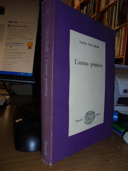 Lucien Lévy - Bruhl. Torino, Einaudi Editore, 1948. L' Anima primitiva. Prima edizione. In-8°, br. orig. 384 pp. Normali lievi segni del tempo ma in ottimo stato di conservazione. Neg. Mass. mob. H.H.
