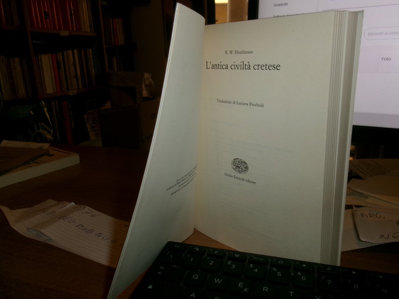 R.W. HUTCHINSON. Torino, Einaudi, 1976. L' Antica Civiltà Cretese. In-8°, br. edit. con sovracopertina. XX, 348 pp. con numerose illustrazioni in bianco e nero in tavole f.t. e n.t. Ottimo stato/come nuovo. Neg. mob. bianco comput.