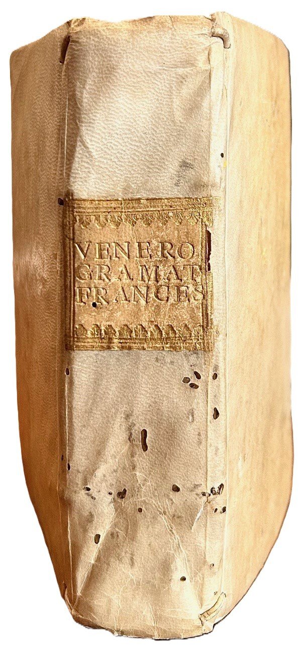 >in-12 (mm. 145x80), pp. XIX, (1), 448, legatura coeva in pergamena, titolo oro su tassello al dorso, tagli spruzzati (forellini di tarlo al dorso). Pregevole edizione ampliata e corretta da Contois di questa fortunata grammatica francese opera del sedicente fiorentino Jean Vigneron (1642-1708), traduttore e lessicografo lorenese. Testo in francese e italiano. Buon esemplare.