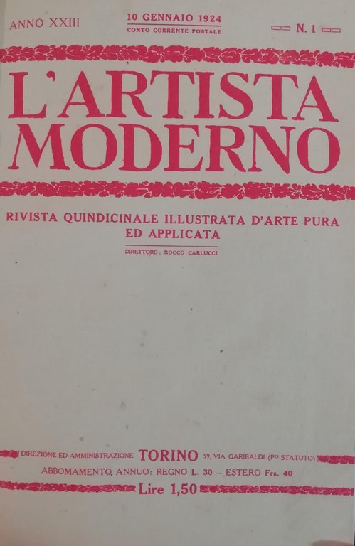 L'ARTISTA MODERNO. RIVISTA QUINDICINALE ILLUSTRATA D'ARTE PURA ED APPLICATA