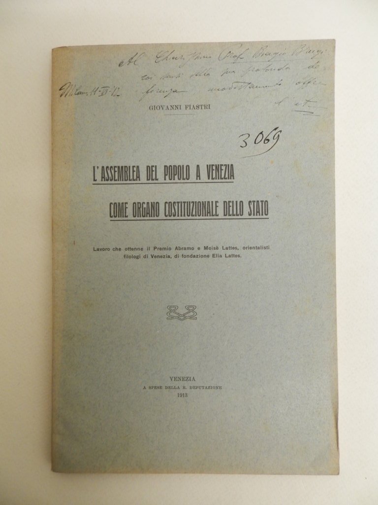 8^, pp. 89 più indice, brossura editoriale, lunga dedica autografa dell'autore al margine superiore della brossura, ottima conservazione, intonse le carte. Estratto dal Nuovo Archivio Veneto. *** TUTTI I NOSTRI LIBRI SONO VISIBILI PREVIO CONTATTO MAIL O TELEFONO NELLA NUOVA SEDE DI MILANO: LIBRERIA COSMOPOLIS, VIA JOMMELLI, 22. ***
