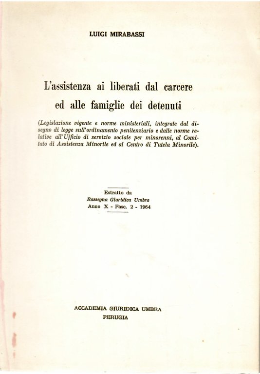 Estratto da Rassegna Giuridica Umbra, anno X, fasc. 2, 1964. Brossura editoriale di 78 pagine. Copia molto buona. SPEDIZIONE IN 24 ORE DALLA CONFERMA DELL'ORDINE.