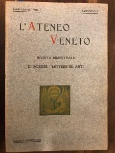 L’ATENEO VENETO. RIVISTA BIMESTRALE DI SCIENZE LETTERE ED ARTI. MAG-GIU 1915