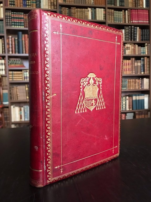 <span style="font-style: normal;">In-4° (cm. 23,6), legatura coeva in piena pelle rossa (lievi abrasioni) con titolo e fregi floreali in oro al dorso, piatti inquadrati da due cornici in oro con al centro sempre in oro le armi vescovili del card. Ferrari (al piatto anteriore) e il simbolo della Santa Lega Eucaristica (al piatto posteriore); tagli dorati; </span><i>dentelles</i><span style="font-style: normal;">; risguardi in carta floreale; </span><i>Ex libris</i> impresso al frontespizio; pp. 392 con numerose illustrazioni (leggere fioriture). Seconda annata della rivista mensile in elegante legatura alle armi del beato Carlo Maria Ferrari, già vescovo di Como e poi arcivescovo di Milano e cardinale. Esemplare molto buono. (NL6)