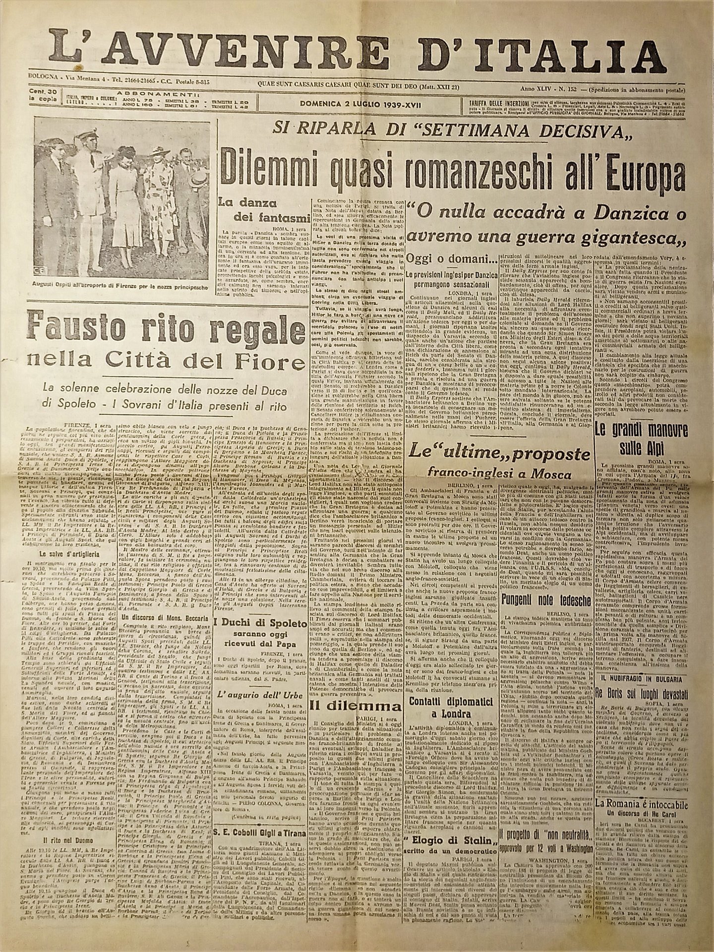 L'Avvenire d'Italia N. 152 - Fausto rito regale nella Città del Fiore - 1939