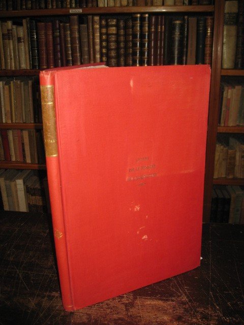 In-folio (cm 45.5x32.5) in legatura premio del Ministero dell'Agricoltura Francese in tutta tela rossa con titolo su tassello al dorso. Prima edizione di 525 esemplari numerati, nostro esemplare N°159 con le incisioni a colori su Papier du Marais. Pp. 44, 14 splendide incisioni originali a colori di August Sezanne con velina protettiva e montate su onglets. Ottimo esemplare. August Sezanne (1856-1935) felsineo, si formò all'Accademia di Belle Arti di Bologna, insegnò a Modena, Bologna e Venezia. Fu abile pittore, decoratore, architetto - suoi i progetti di Palazzo Majani a Bologna e della cappella Stucky a Venezia, partecipò all'affrescatura del padiglione italiano all'esposizione universale di Bruxelles. Particolarmente versato nelle arti decorative, nell'opera grafica operò una felice e modernissima sintesi stilistica di alcuni elementi dei movimenti art and crafts, preraffaelliti e simbolisti con l'intimismo delle accademie italiane fin de siècle e del mondo di Octave Uzanne. Da un punto di vista stilistico segnaliamo l'uso attivo degli elementi parergonali che si mischiano attivamente alla materia dell'incisione ravvivandone il significato mentre da un punto di vista grafico stupiscono per nettezza e freschezza quasi orientali le rappresentazioni dell'acqua nelle sue molteplici concrezioni invernali - ghiaccio, neve, brina.