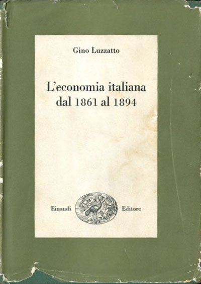2. ed. IX, 224 p. ; 22 x 15 cm. Biblioteca di cultura storica. Apparso nel 1963 in un'edizione curata dalla Banca Commerciale Italiana, questo volume di Luzzatto ricostruisce la storia economica dei primi trent'anni del Regno d'Italia. L'analisi, fondata in parte su materiale d'archivio e fonti inedite e in parte su fonti a stampa (inchieste, statistiche, atti parlamentari, bilanci d'imprese), si apre con l'Unità d'Italia per esaminare la situazione finanziaria del nuovo regno e il concorso del capitale straniero, l'introduzione del corso forzoso e la sua abolizione, la situazione dell'agricoltura, dell'industria e del commercio nel primo ventennio, la rottura commerciale con la Francia, per concludere con gli anni più neri dell'economia italiana dal 1889 al 1894. La profondità dell'analisi e l'esattezza dell'interpretazione fanno di questo volume un autentico modello di ricerca. Legatura editoriale con coperta rigida in tela verde, titolo impresso in bianco al dorso, muto il piatto, la sovraccoperta editoriale presenta vari tagli e lacerazioni ai profili, le pagine interne sono sottolineate e con annotazioni ms. Codice libreria 1139.