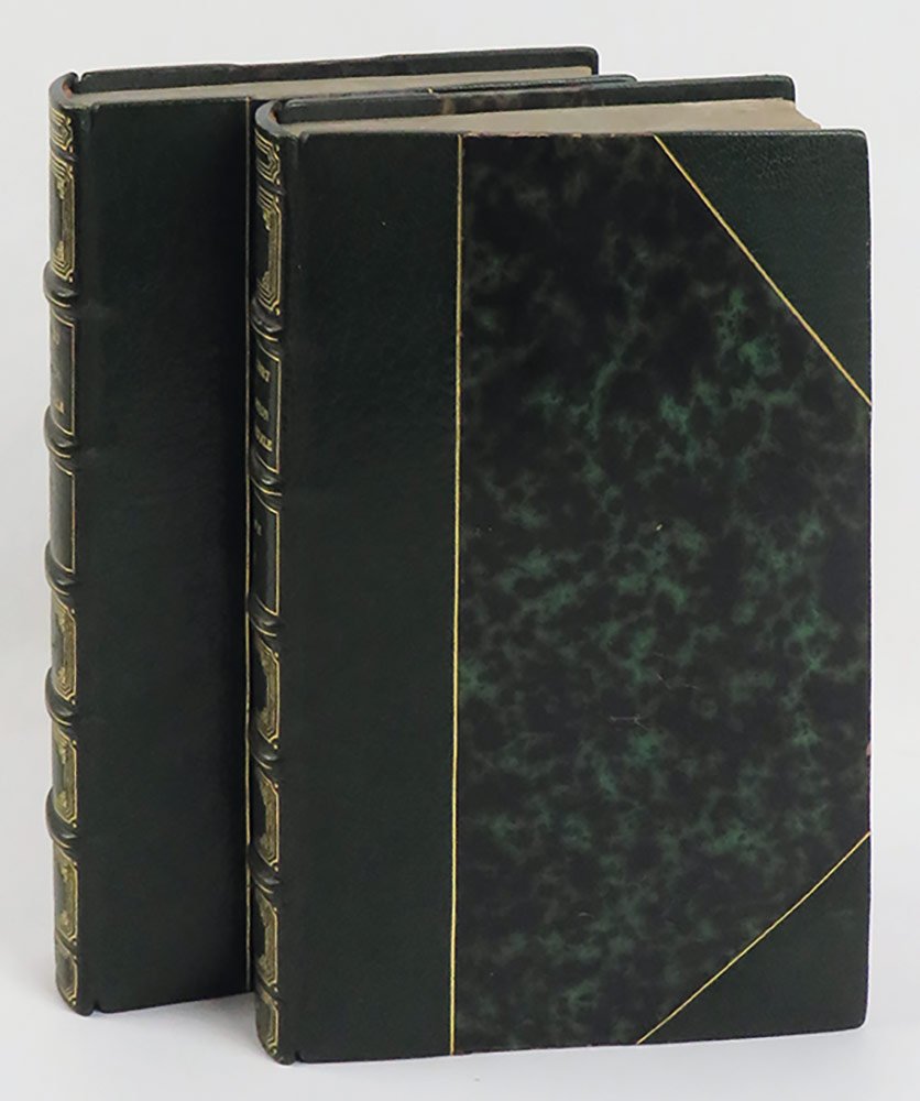 - legatura in mezzo marocchino verde con angoli firmata «Canape» alla seconda sguardia di ciascun volume (Georges Canape è stato un noto rilegatore francese); dorso a sei scomparti con titoli e decorazioni geometriche in oro; cuffie in rosso e giallo, piatti e sguardie marmorizzati; conserva le brossure originali,