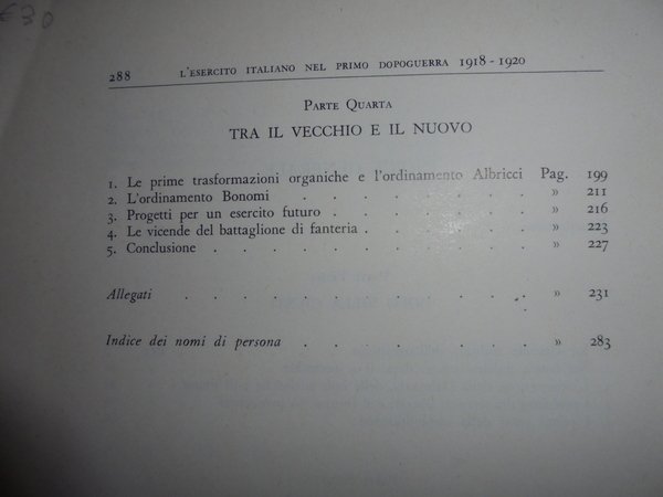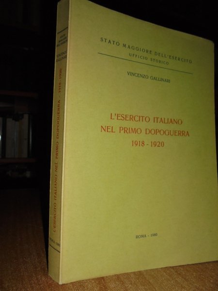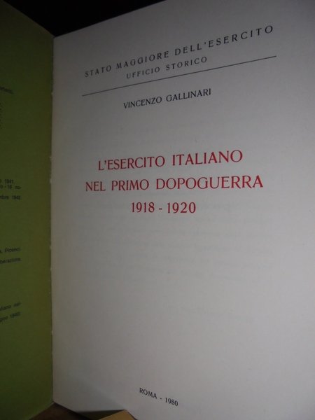 Vincenzo, Gallinari. Roma, Tip. Regionale, 1980. L' Esercito italiano nel primo dopoguerra 1918 - 1920. In-8°, cartoncino edit. 288 pp. in fine nella tasca apposita 4 carte più volte ripiegate. In ottimo stato di conservazione. Neg. mob. storia.