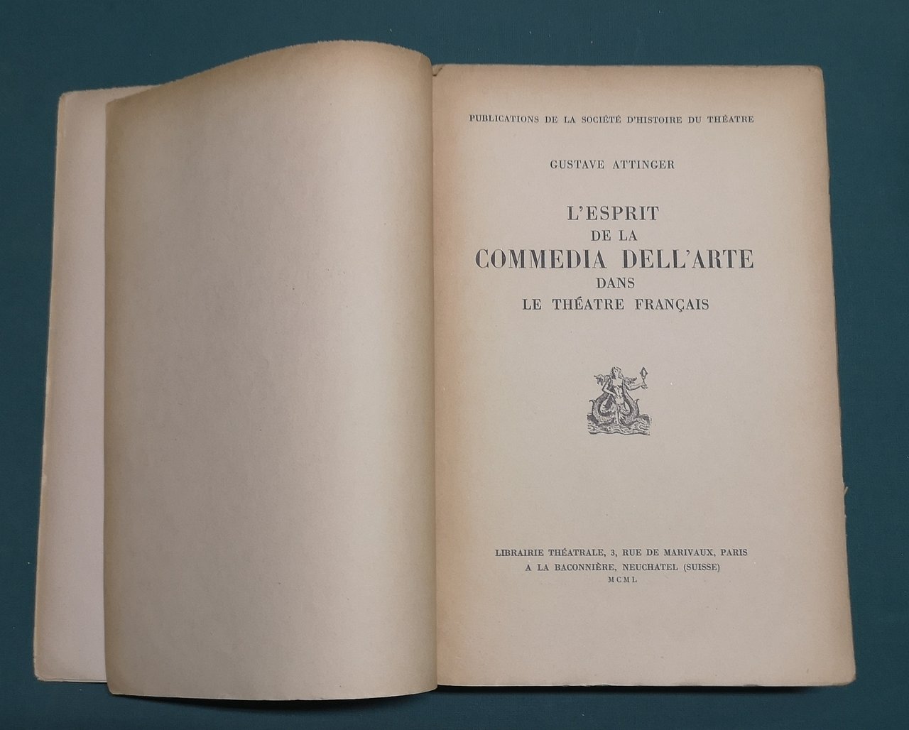 >in-4, 489, broch. edit. L'opera tratta delle origini della Commedia dell'arte, del teatro di Molière, e della Commedia dell'arte nel teatro francese ed italiano dal XVII al XVIII secolo. Autorevole pubblicazione della Société ''d'Histoire du Théatre''.