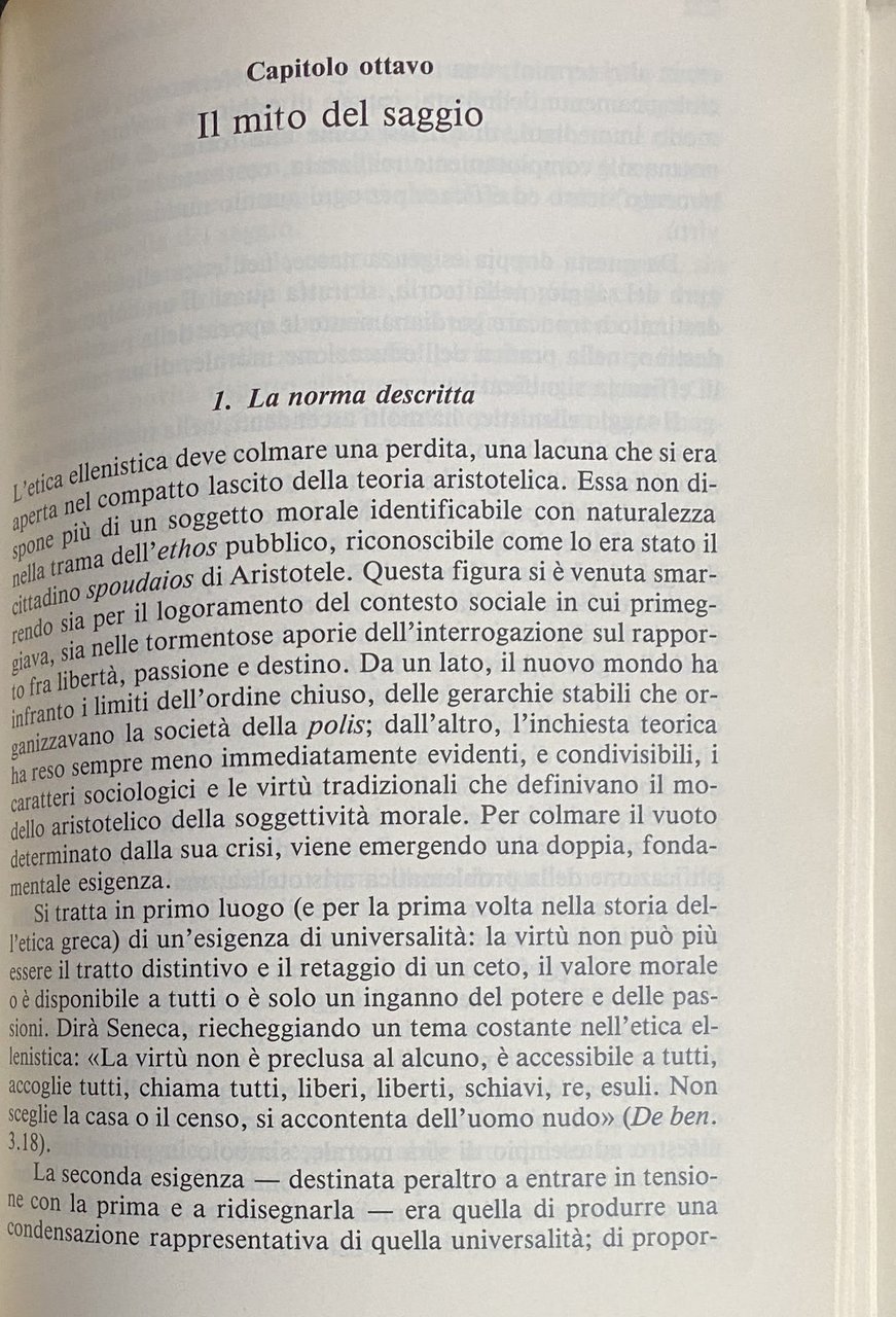 Soggetti: Storia Etica antica Omero Plotino Manuali Problemi etici Linguaggio Poesia Tragedia Storiografia Filosofia Pensiero filosofico antico Grecia Morale Socrate Aristotele Ruolo Costanti Soggetto Felicità Virtù Iliade Dialettica Forza Città Poleis Politica Crisi Solone Educazione Potere Bibliografia Riferimento Studi culturali Libri ari fuori catalogo Classici Anima Credenze Mitologia Rituali Famiglia Dioniso Dèi Religione Verità Conflitto Ricomposizione Platone La Repubblica Personaggi Gerarchia Giustizia Governo Condizionamento Leggi Bene Tempo Spazio Platonismo Società Natura Autonomia Pratica Epistemologia Beni Ricchezza Passioni Teoria Scuola Libertà Passione Destino Ragione Malattia Schiavitù Soldati Guerra Mito Saggio Norma Toro Falaride Arciere Attore Arte Vivere Morire Morte Stoicismo Stoici Cristianesimo Lévy-Strauss Tacito Annali Talete Teofrasto Timone Tolomeo Trasimaco Tucidide Peloponneso Tugendhat Varrone Vernant Vettio Valente Veyne Weber Zenone Cizio Stobeo Zoroastro Adkins Commento Topici De Fato Anassagora Antifonte Tetralogie Aristofane Nuvole Rane Aristone di Chio Divinità Opere letterarie Luoghi Diels-Kranz Fragmente Vorsokratiker Diogene Laerzio Vite Kuhn Galent von Arnim Nicomachea Eudemia Metafisica Retoria Aulo Gellio Calcidio Crisippo Cicerone Crizia Democrito Donini Empedocle Erodoto Storie Eraclito Gadamer Galeno Foucault Finley Epicuro Epitteo Euripide Giamblico Gorgia Habermas Heidegger Hegel Nietzsche Kant Luciano Lucrezio Panezio Orfici Meier Mondolfo Mann Odissea Pitagora Fedone Plutarco Porfirio Seneca Edipo Senofane Senofonte Sesto Empirico Spinoza Sofocle Agamennone Ateniese Cittadini Condizione Conflitti Corpo Desiderio Dike Epitteto Greca Isonomia Logos Metafora Mondo Oplitica Phronesis Pitagorici Polis Principio Sociale Socratica Sofistica Spoudaios Thymos Tradizione Uomini Valore Zeus Letteratura History Ancient Ethics Homer Plotinus Manuals Ethical Problems Language Poetry Tragedy Historiography Philosophy Philosophical Thought Greece Morality Socrates Aristotle Role Constants Subject Happiness Virtue Iliad Dialectics Strength City Politics Crisis Solon Education Power Bibliography Reference Cultural Studies Out-of-Print Books Classics Soul Beliefs Mythology Rituals Family Dionysus Gods Religion Truth Conflict Recomposition Plato The Republic Characters Hierarchy Justice Government Conditioning Laws Good Time Space Platonism Society Nature Autonomy Practice Epistemology Goods Wealth Passions Theory School Freedom Passion Destiny Reason Illness Slavery Soldiers War Myth Bull Phalaris Archer Death Stoicism Stoics Christianity Annals Thales Theophrastus Ptolemy Thrasymachus Thucydides Peloponnese Vettius Zeno Citius Stobaeus Zoroaster Commentary Fate Anaxagoras Antiphon Tetralogies Aristophanes Clouds Frogs Deities Literary Works Places Diogenes Laertius Nicomachean Lives Eudemians Metaphysics Rhetoric Aulus Gellius Chalcidius Chrysippus Cicero Critias Democritus Empedocles Herodotus Histories Heraclitus Epicurus Epicurean Euripides Iamblichus Gorgias Lucian Lucretius Panaetius Orphics Odyssey Pythagoras Phaedo Plutarch Porphyry Oedipus Xenophanes Xenophon Sextus Empiricus Sophocles Agamemnon Athenian Citizens Condition Conflicts Body Desire Epictetus Greek Isonomy Metaphor World Hoplite Pythagoreans Social Principle Socratic Sophistry Tradition Men Value Literature Detienne Galimberti Vernant