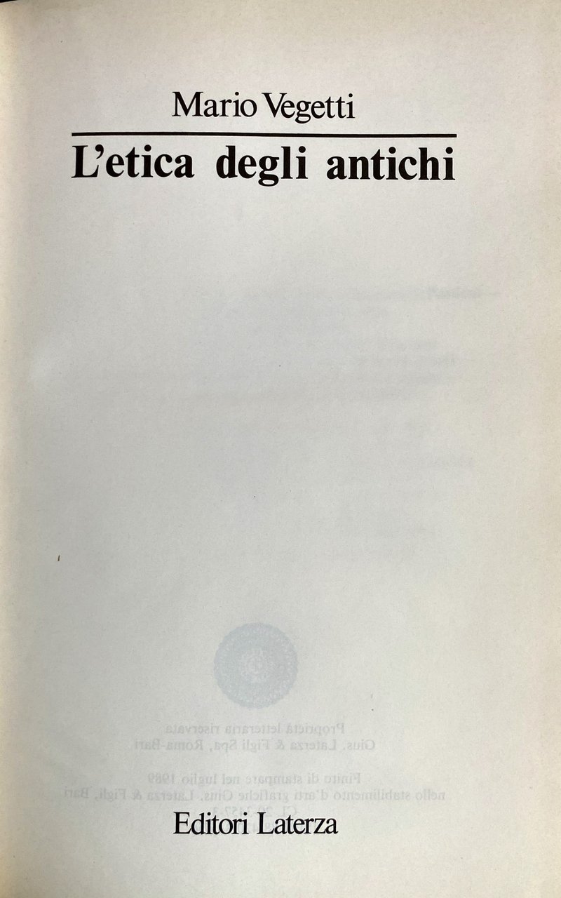 Titolo: L'etica degli antichi