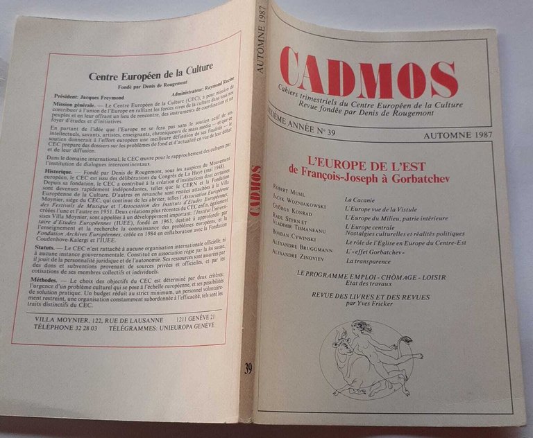 Copertina cartonata ingiallita. Tagli e pagine leggermente ingialliti. Collana: "Cadmos" Dixième année N.39. Automne 1987. 90 Buono (Good) .