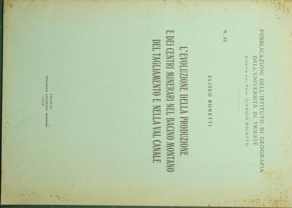 L'evoluzione della produzione e dei centri minerari nel bacino montano del Tagliamento e nella Val Canale | Rare and modern books | Bonetti Eliseo