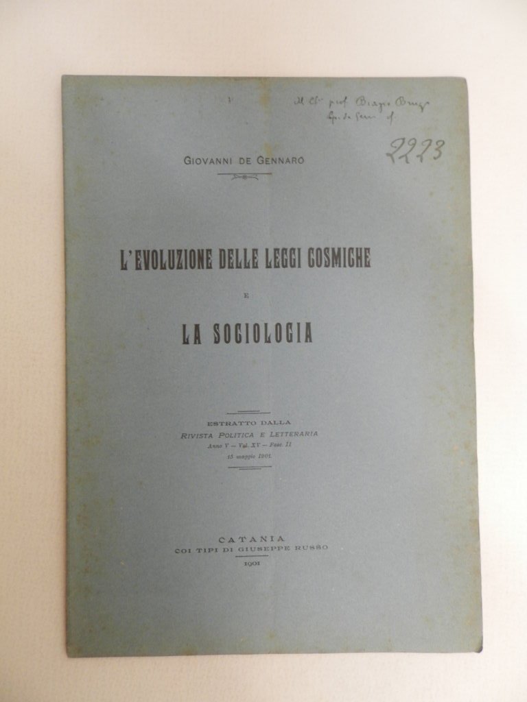 8^, pp. 31, brossura editoriale, titolo al dorso, estratto dalla Rivista Politica e letteraria, anno V, vol. XV, 15 maggio 1901, dedica autografa dell'autore alla copertina, esemplare molto buono, piegatura da spedizione. *** TUTTI I NOSTRI LIBRI SONO VISIBILI PREVIO CONTATTO MAIL O TELEFONO NELLA NUOVA SEDE DI MILANO: LIBRERIA COSMOPOLIS, VIA JOMMELLI, 22. ***