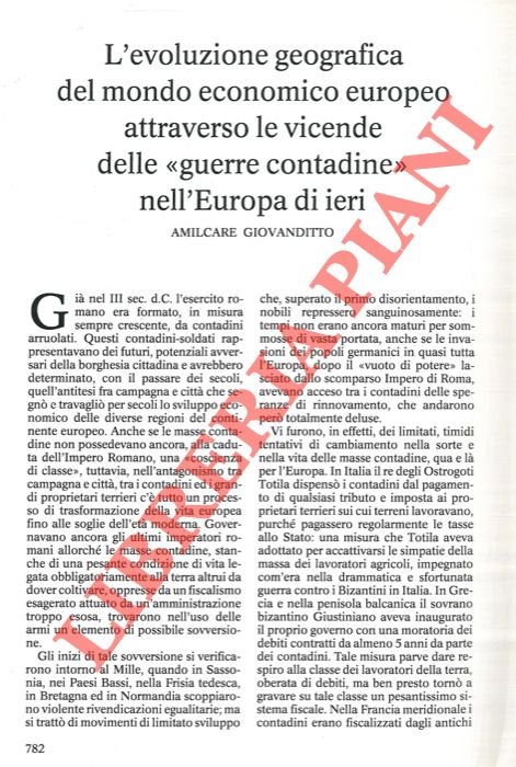 L'evoluzione geografica del mondo economico europeo attraverso le vicende delle “guerre contadine” nell'Europa di ieri.