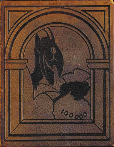 - bella legatura di Kieffer (come da etichetta al contropiatto) in piena pelle, con illustrazione incisa a secco ai piatti raffigurante un diavolo, brossura originale illustrata a colori conservata così come il dorso, titoli oro al dorso,