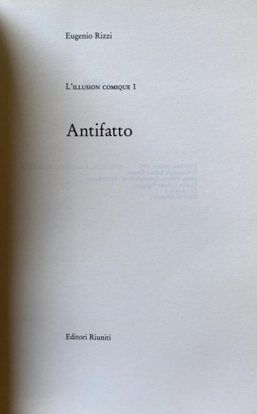 Titolo: L'illusion comique 1. Antifatto. Romanzo