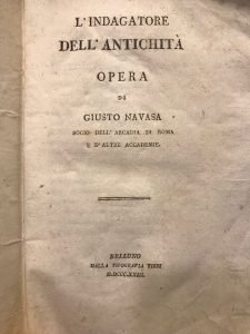 L’INDAGATORE DELL’ANTICHITA’. OPERA DI GIUSTO NAVASA SOCIO DELL’ARCADIA DI ROMA E D’ALTRE ACCADEMIE