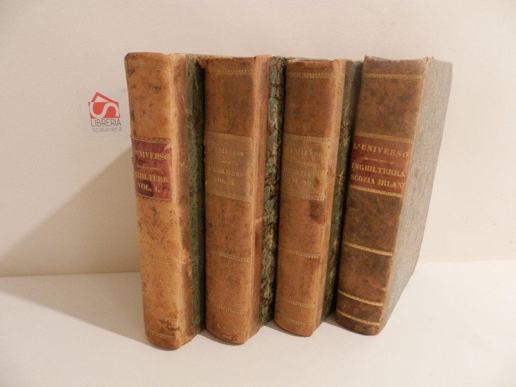 4 volumi, 8°, 23 cm, pp. 486; 560; 471; 585; traduzione di A. F. Falconetti. 3 carte geografiche e 204 tavole incise fuori testo, mancano 4 tavole al quarto volume. Rilegatura coeva in mezza pelle, titolo in oro su tassello al dorso, piatti marmorizzati. Fa parte di: L'Universo o storia e descrizione di tutti i popoli ec, loro religioni, costumi, usanze ec. Strappo a una tavola lontano dall'incisione, esemplare molto buono. *** TUTTI I NOSTRI LIBRI SONO VISIBILI PREVIO CONTATTO MAIL O TELEFONO NELLA NUOVA SEDE DI MILANO: LIBRERIA COSMOPOLIS, VIA JOMMELLI, 22. ***