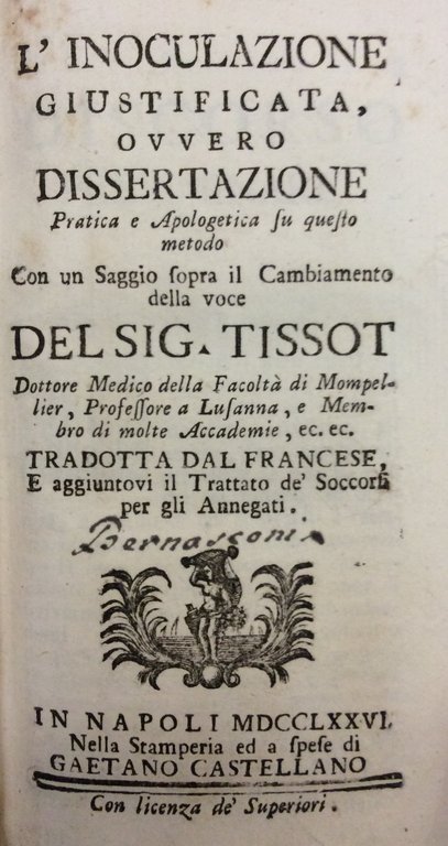 L'INOCULAZIONE GIUSTIFICATA. - Ovvero dissertazione pratica e apologetica su questo metodo. Tradotta dal francese.