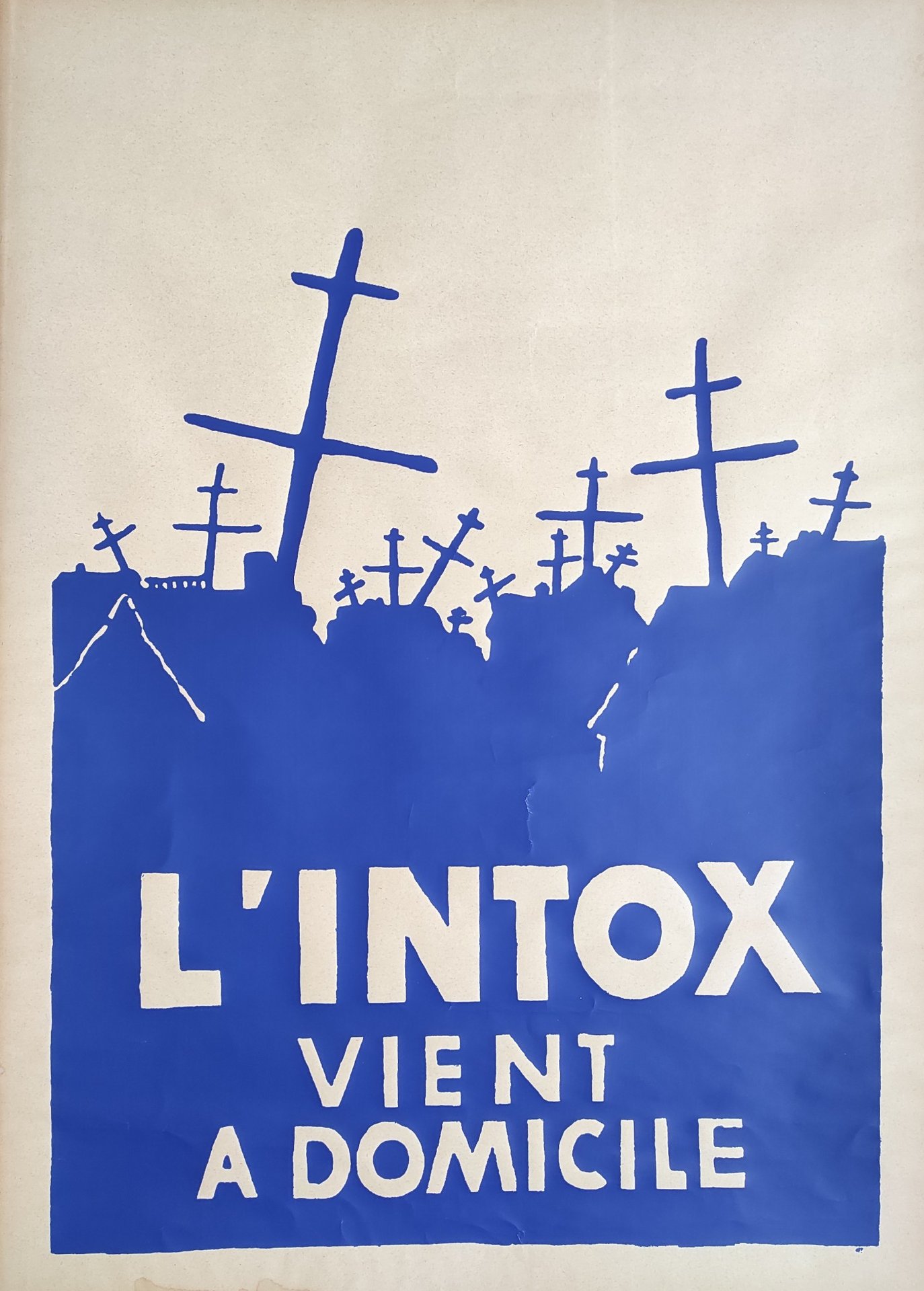 Vi è rappresentata una immagine semplice: croci di Lorena che sostituiscono le antenne sui tetti unite ad uno slogan efficace. La forza del messaggio è amplificata da un design semplice e dalla stampa monocromatica. serigrafia cm. 70 x 50 Buono (Good) Buon es., difetti sparsi.