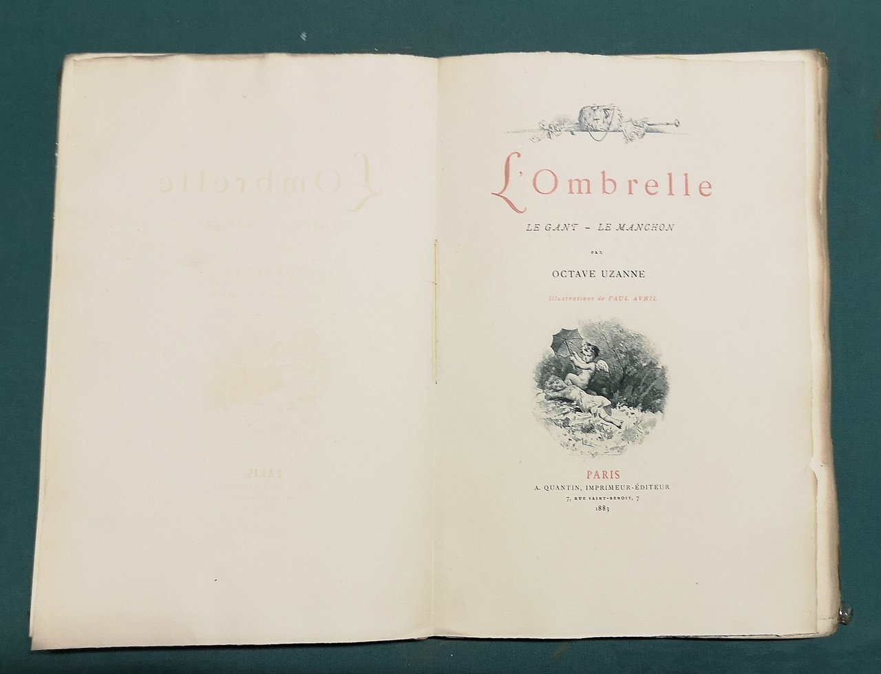 >in-8 pp. (8), 138, (4) contornate da cornici tipografiche e con numerose incisioni in rame tirate in diversi colori (seppia, sanguigna, azzurro, verde). Broch. edit. figurata in oro e a colori. Tutte le illustrazioni sono opera di Paul Avril. Edizione originale di una delle opere più affascinanti della vasta produzione di Uzanne. Buon esemplare (leggermente allentato).