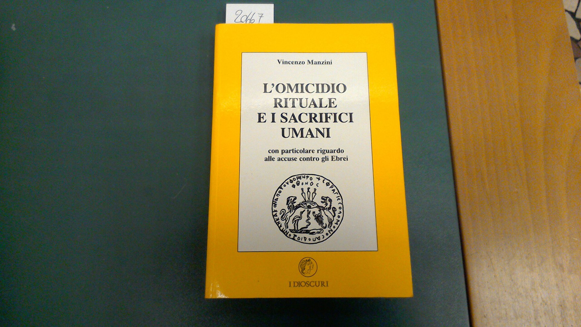 Prima edizione di questo studio del grande giurista sugli omicidi rituali e i sacrifici umani nelle varie epoche e nelle varie culture di tutti i continenti. Particolare rilievo assume la parte dedicata alla leggenda della "Pasqua di sangue" e degli omicidi rituali che sarebbero stati perpetrati dagli ebrei.