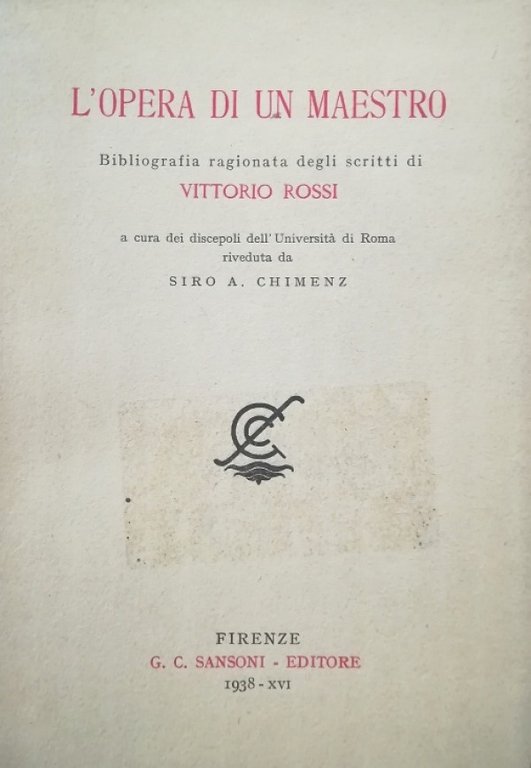 L' OPERA DI UN MAESTRO. BIBLIOGRAFIA RAGIONATA DEGLI SCRITTI DI VITTORIO ROSSI