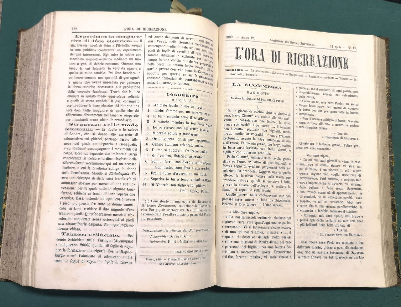 L'Ora di Ricreazione. Foglio settimanale di Novelle, Racconti ameni e morali, Notizie utili, Varietà, ecc. - ANNATE COMPLETE I (1877), II (1878), IV (1880)