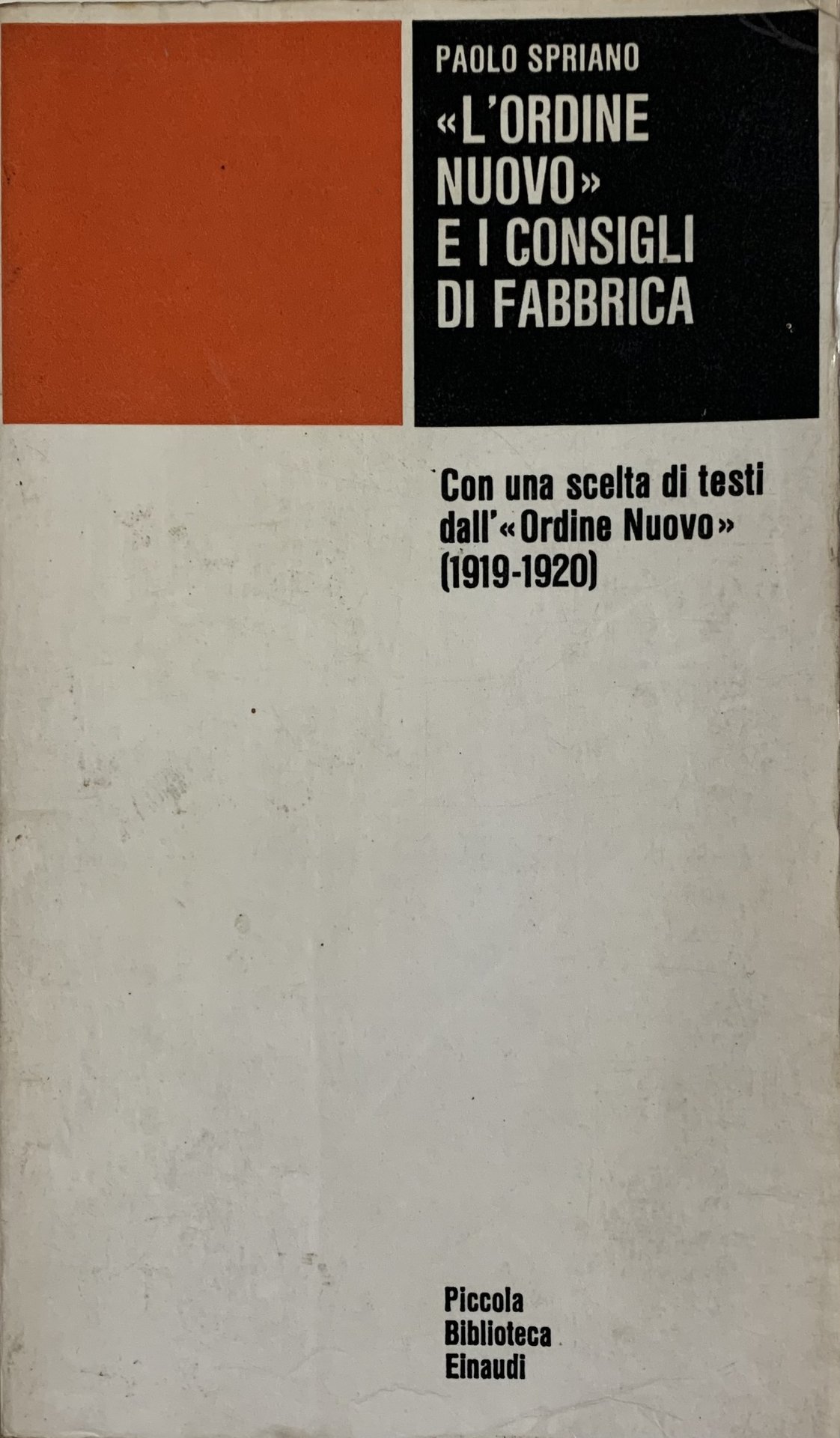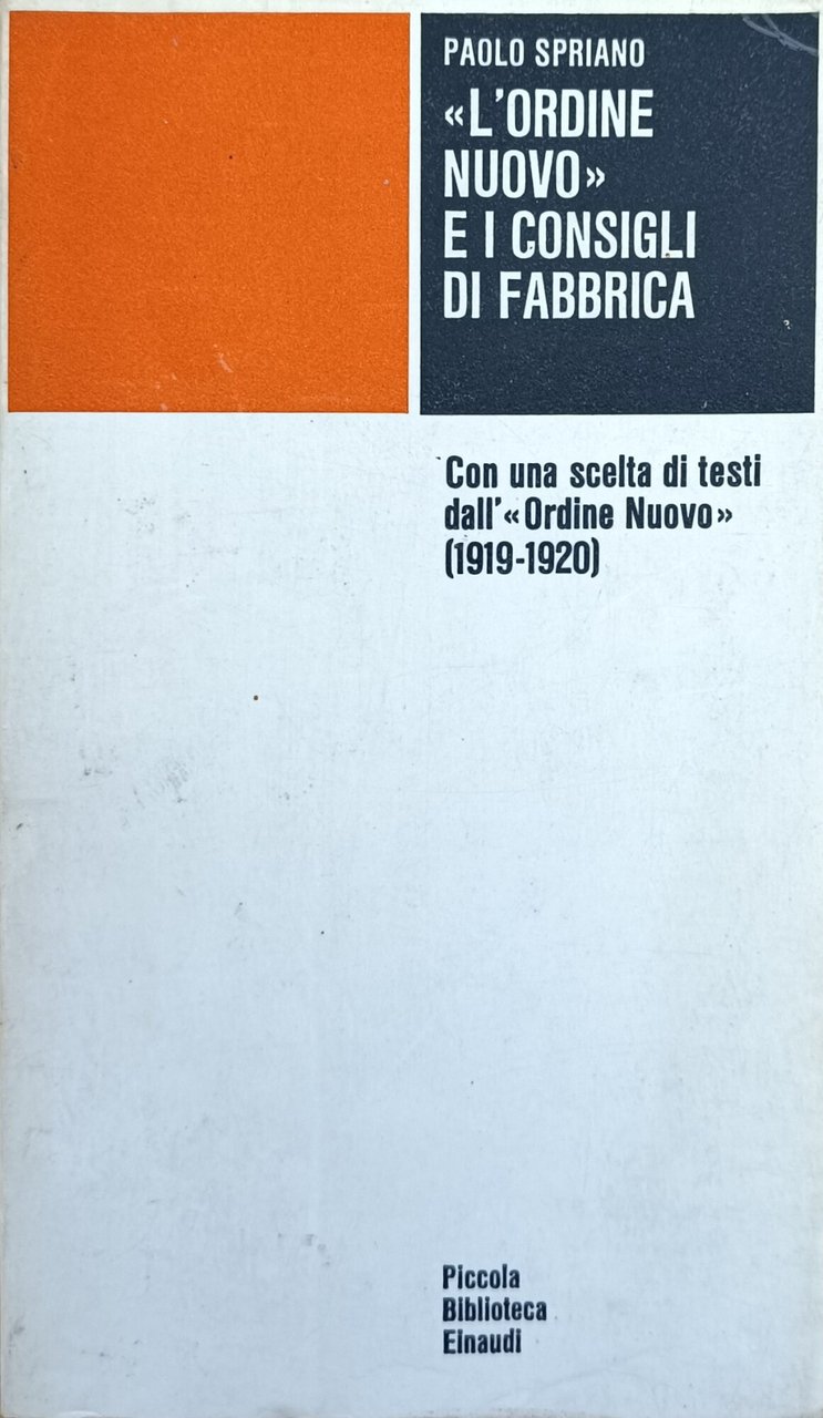 Con una scelta di testi dall' "Ordine Nuovo" (1919 - 1920). in ottavo leg. bross. pp. 330 Buono (Good) Buon es. con segni del tempo in copertina.