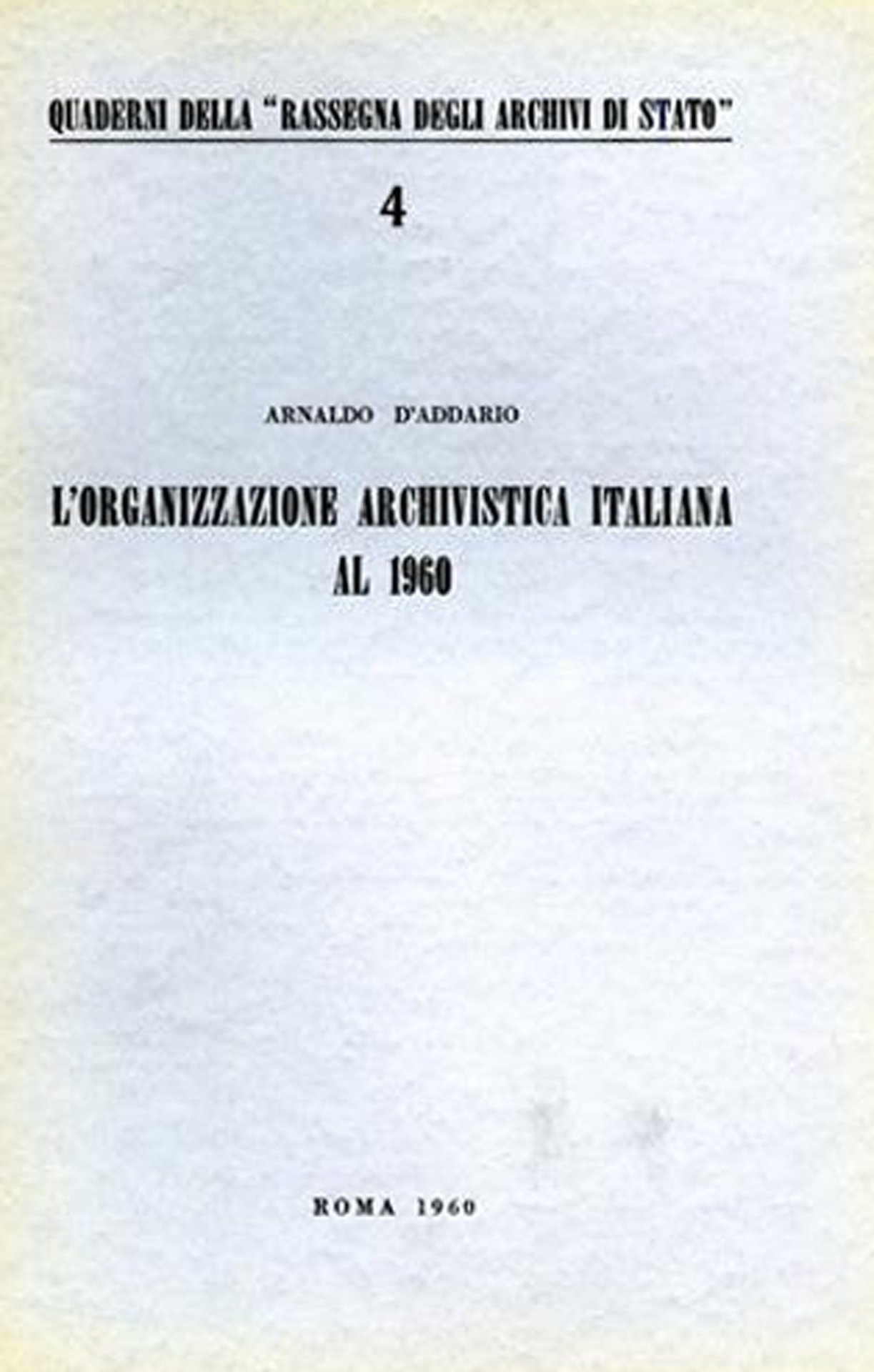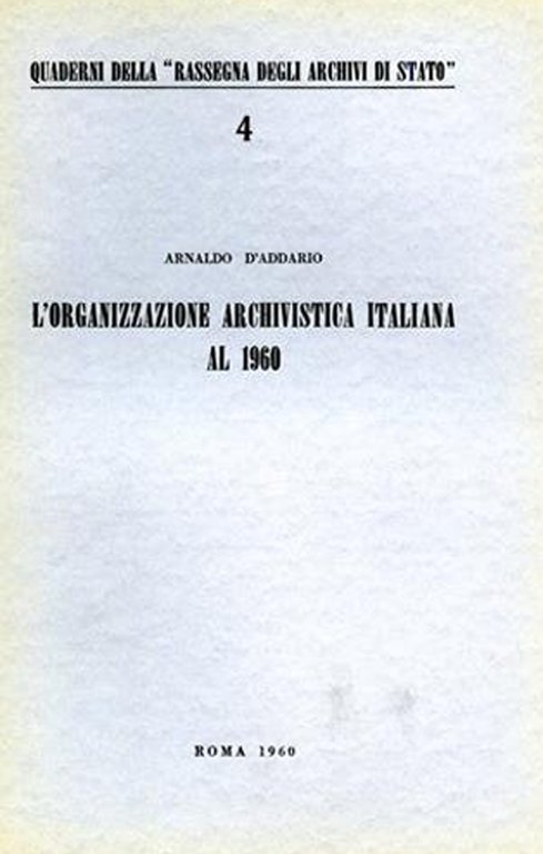 L'organizzazione archivistica italiana al 1960 | Rare and modern books | D''Addario O.