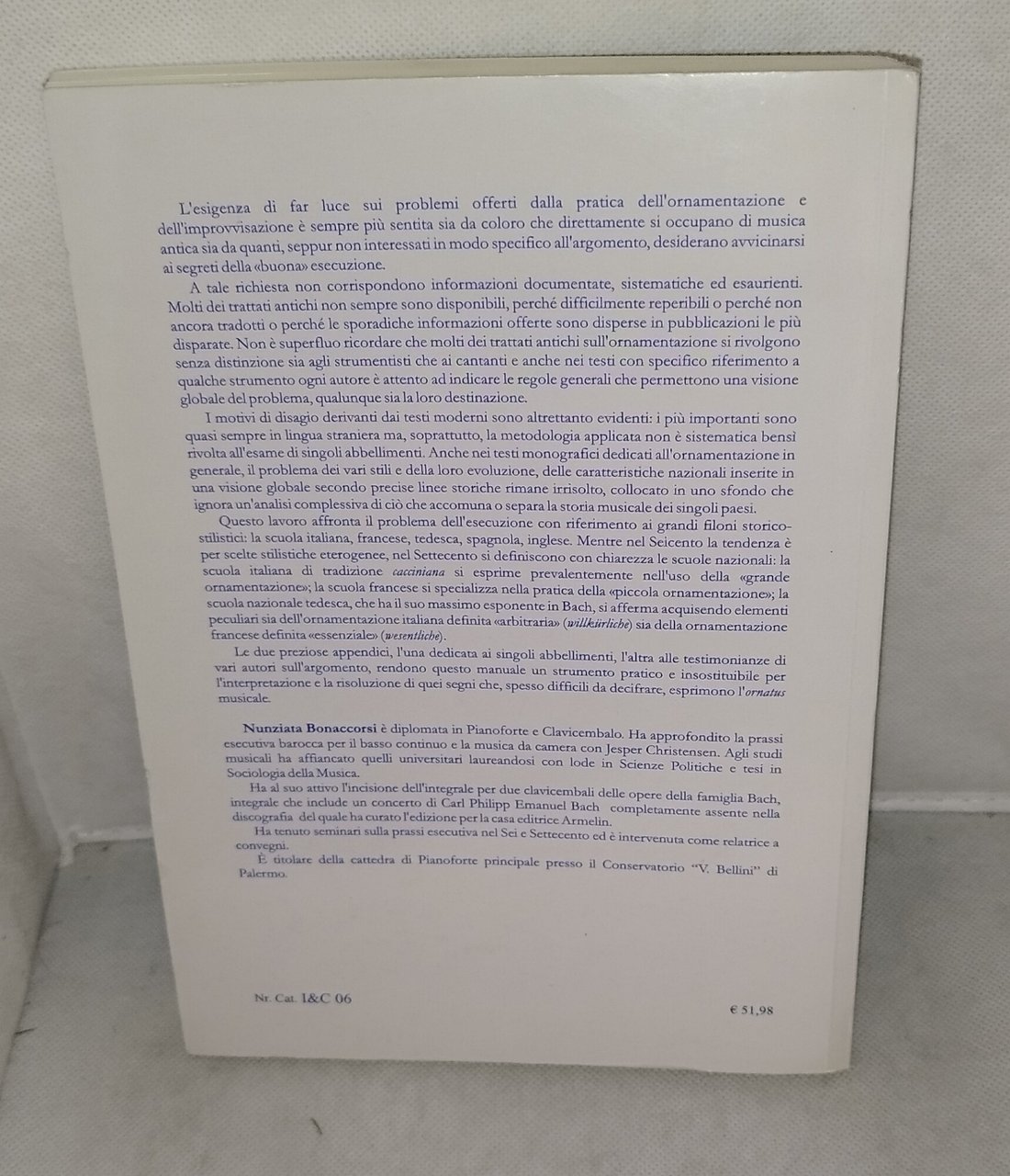 nunziata bonaccorsi l'ornamentazione ovvero l'arte d'abbellire in musica. , armelin musica 2002 italiano, 375 °°