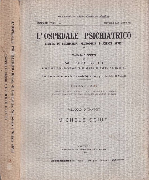 L'Ospedale Psichiatrico, anno III, fasc. IV, Ottobre 1935