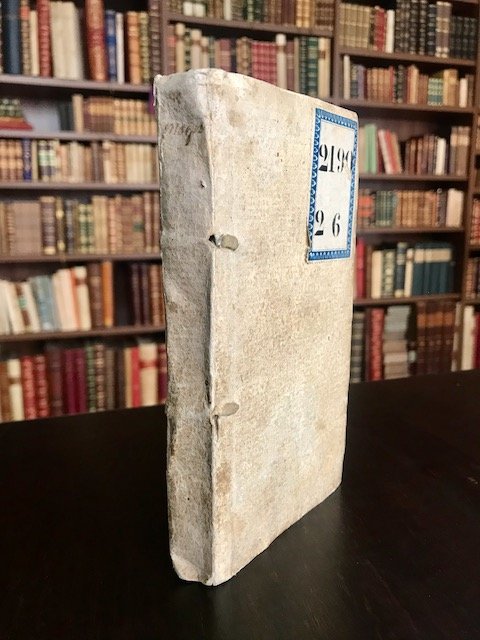 In-12° (cm. 16), legatura coeva in cartonato d'attesa (etichetta biblioteconomica al piatto); pp. 336 in barbe, con un leggerissimo alone alle prime e un forellino alla sola carta L8. Operetta letteraria e gastronomica ambientata sul Lago del Segrino (Erba), di cui sono descritte frescure e delizie a condimento delle facezie, dei dialoghi, dei discorsi. Lì quattro amici si ritrovano per «fare publica osteria» [p. 4] e conversare accompagnati da una bottiglia di vin Moscato. «Piacevole» [Piantanida 3229]. Cfr. anche Paleari 352. Esemplare molto buono. (NF8)