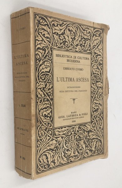 L'ULTIMA ASCESA. Introduzione alla LETTURA del "PARADISO" [di Dante Alighieri]. Biblioteca di cultura moderna 292. | Rare and modern books | Cosmo Umberto (Vittorio Veneto 1868 - Corio 1944)