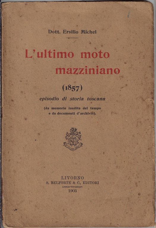 L' ultimo moto mazziniano (1857) : episodio di storia toscana (da memorie inedite del tempo e da documenti d'archivio)