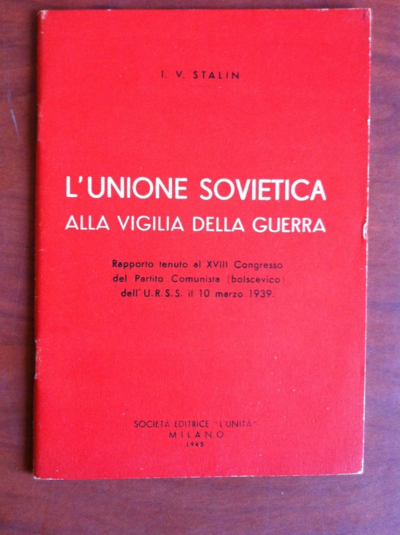 L'UNIONE SOVIETICAalla vigilia della Guerrarapporto tenuto al XVIII Congresso del Partito Comunista (bolscevico) dell'U.R.S.S. il 10 marzo 1939Società editrice "L'Unità" Milano 194568 pagine - formato 12x17 cm in buono stato (48 g)E7576