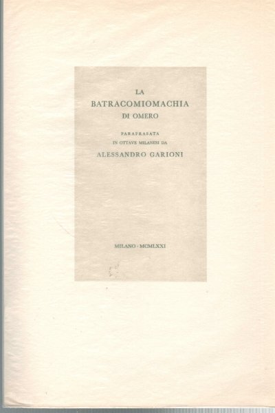 La Batracomiomachia di Omero ossia La guerra de' topi co' ranocchi