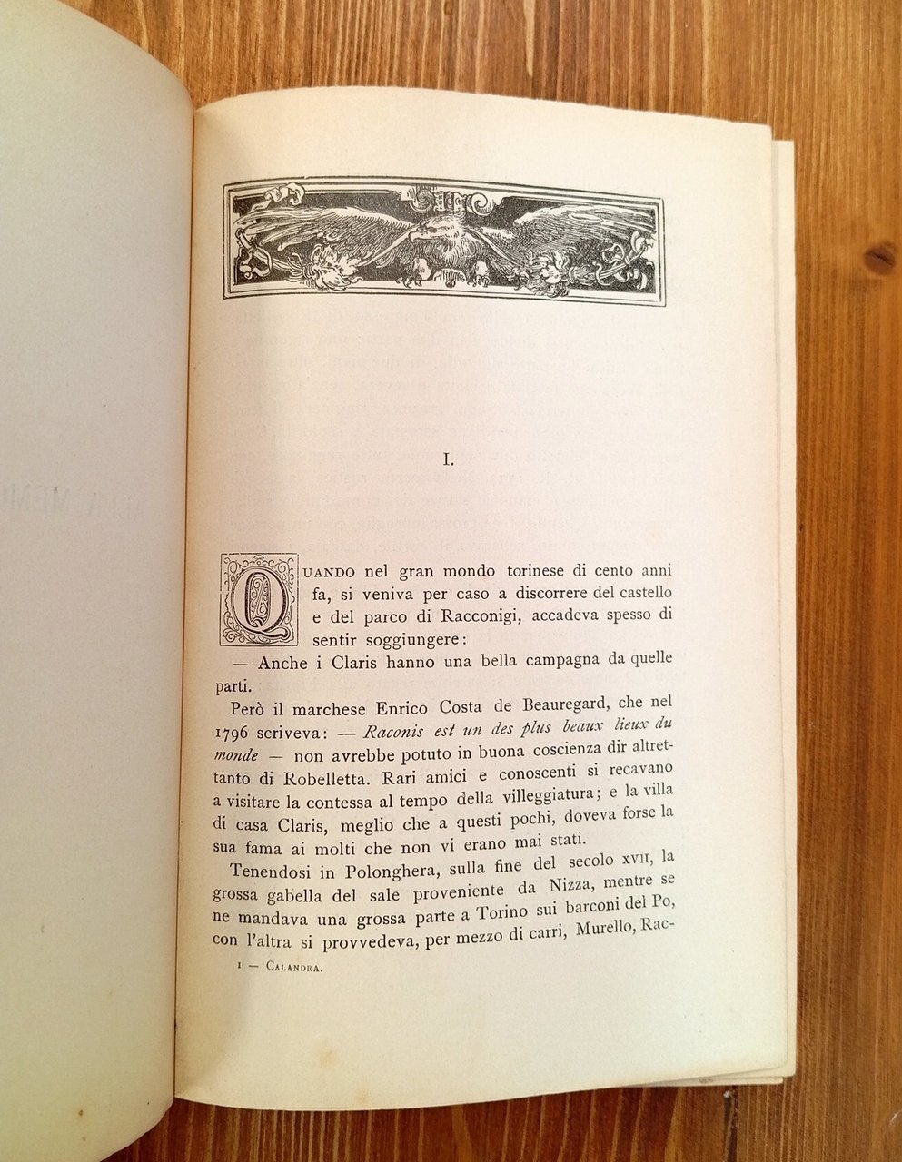 Prima edizione - Volume rilegato in copertina amatoriale cartonata, titolo in oro su tassello in pelle applicato al dorso, 471 pagine; testatine e finalini incisi. Timbro di biblioteca privata dismessa al frontespizio, peraltro esemplare ottimamente conservato; edizione rara -- Prima edizione di questo celebre romanzo storico, assai elogiato da Benedetto Croce ("Letteratura della nuova Italia", IIII). Ambientato nel Piemonte dei moti rivouzionari di fine Settecento, il romanzo è narrato con vivo e fedele gusto della rappresentazione storica.