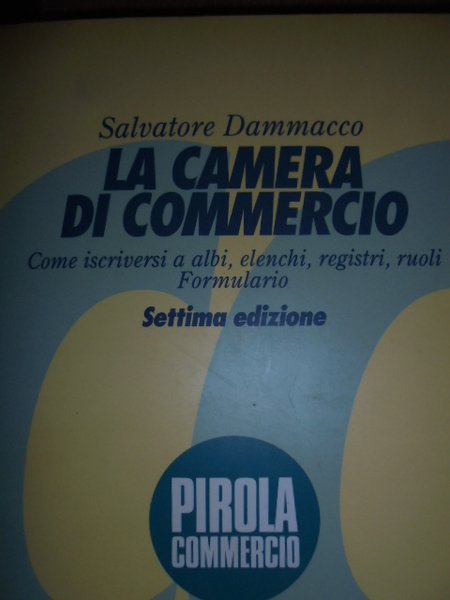 Salvatore, Dammacco. Milano, Il Sole 24 Ore Pirola SPA, 1996. La camera di commercio.Come iscriversi a albi, elenchi, registri, ruoli. Formulario. Settima edizione. In-8°, cart. edit. 525 pp. In ottimo stato di conservazione. Neg. magazz. scat. 10