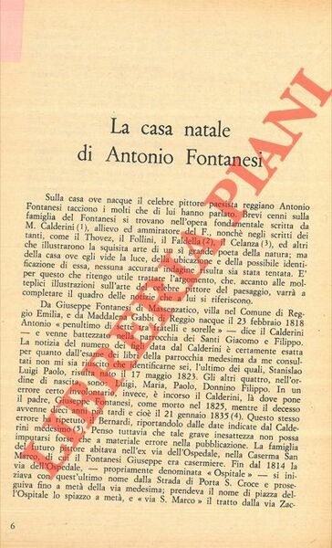 Reggio Emilia, 1968, 8vo stralcio con copertina posticcia muta, pp. 6/11. - ! ATTENZIONE !: Con il termine estratto (o stralcio) intendiamo riferirci ad un fascicolo contenente un articolo, completo in se, sia che esso sia stato stampato a parte utilizzando la stessa composizione sia che provenga direttamente da una rivista. Le pagine sono indicate come "da/a", ad esempio: 229/231 significa che il testo è composto da tre pagine. Quando la rivista di provenienza non viene indicata é perché ci è sconosciuta. - ! ATTENTION !: : NOT A BOOK : “extract” or “excerpt” means simply a few pages, original nonetheless, printed in a magazine. Pages are indicated as in "from” “to", for example: 229/231 means the text comprises three pages (229, 230 and 231). If the magazine that contained the pages is not mentioned, it is because it is unknown to us.
