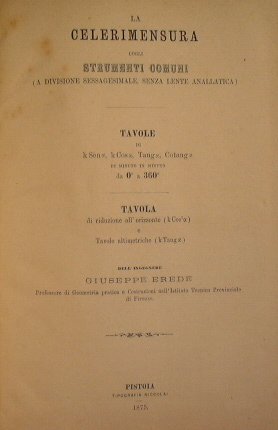 Cogli strumenti comuni (a divisione sessagesimale, senza lente anallatica) - in 8° - pp.XXXII + 100 - Tela - Una tavola pieghievole con illustrazioni alla fine - Contiene tavole - Abrasioni alla tela